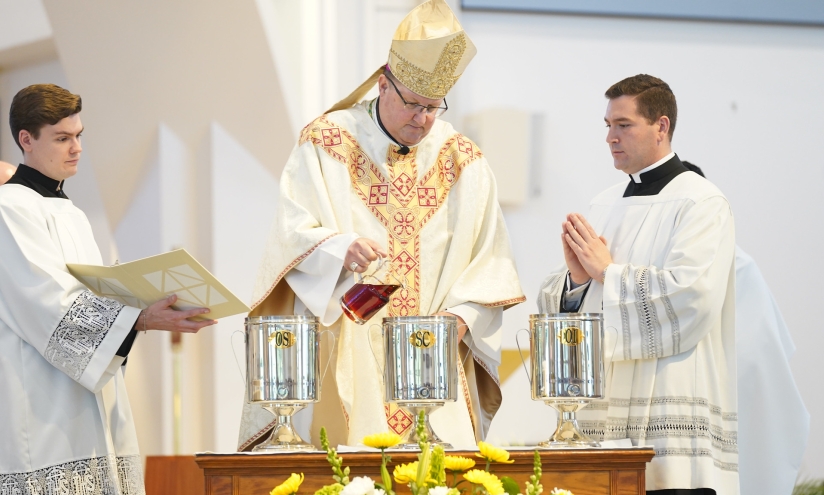 At the annual Chrism Mass on Tuesday, March 31, Bishop Parkes will consecrate Sacred Chrism, a mixture of oil and balsam, that will be used for anointing during thousands of Baptisms and Confirmations throughout the coming year in local parishes.