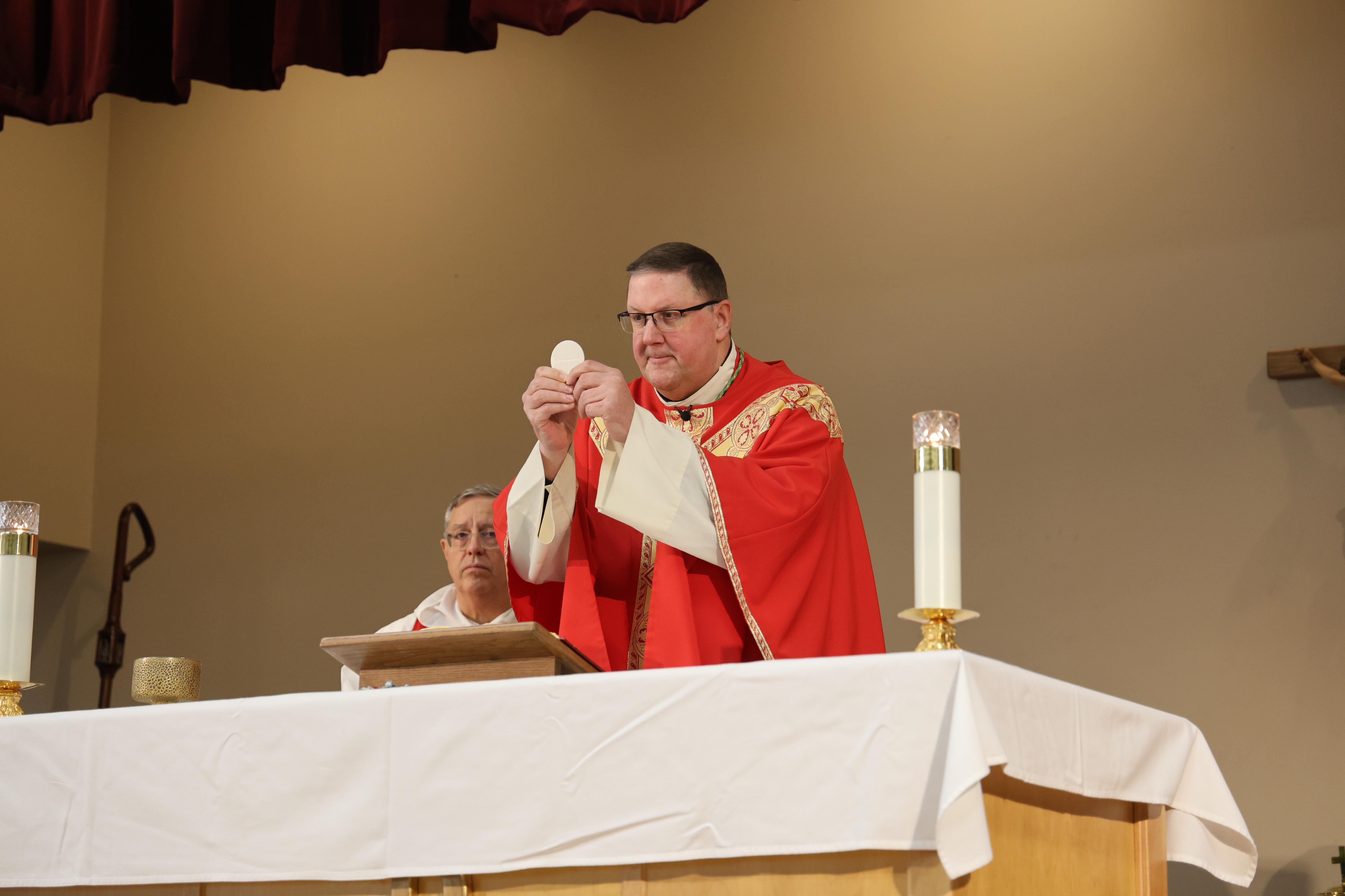 This was followed by daily Mass celebrated by Bishop Gregory Parkes. In his homily, Bishop Parkes welcomed the attendees and noted that their presence is witness to their faith and desire to grow in holiness and virtue. He reflected on the day’s Gospel and said, “Jesus doesn’t ask for perfection. He asks us for honesty and for trust in Him. Bring what you have and give it to Him.” Bishop Parkes also reminded the men that the conference is not just a day of inspiration but rather nourishment for the road ahead.