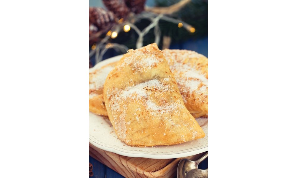 Place a teaspoon (or a tablespoon) of the filling on one-half of the pastry then fold over and seal to form half-moons. Pierce the top with the tines of a fork then either deep-fry or bake the pockets until golden brown and cooked through.