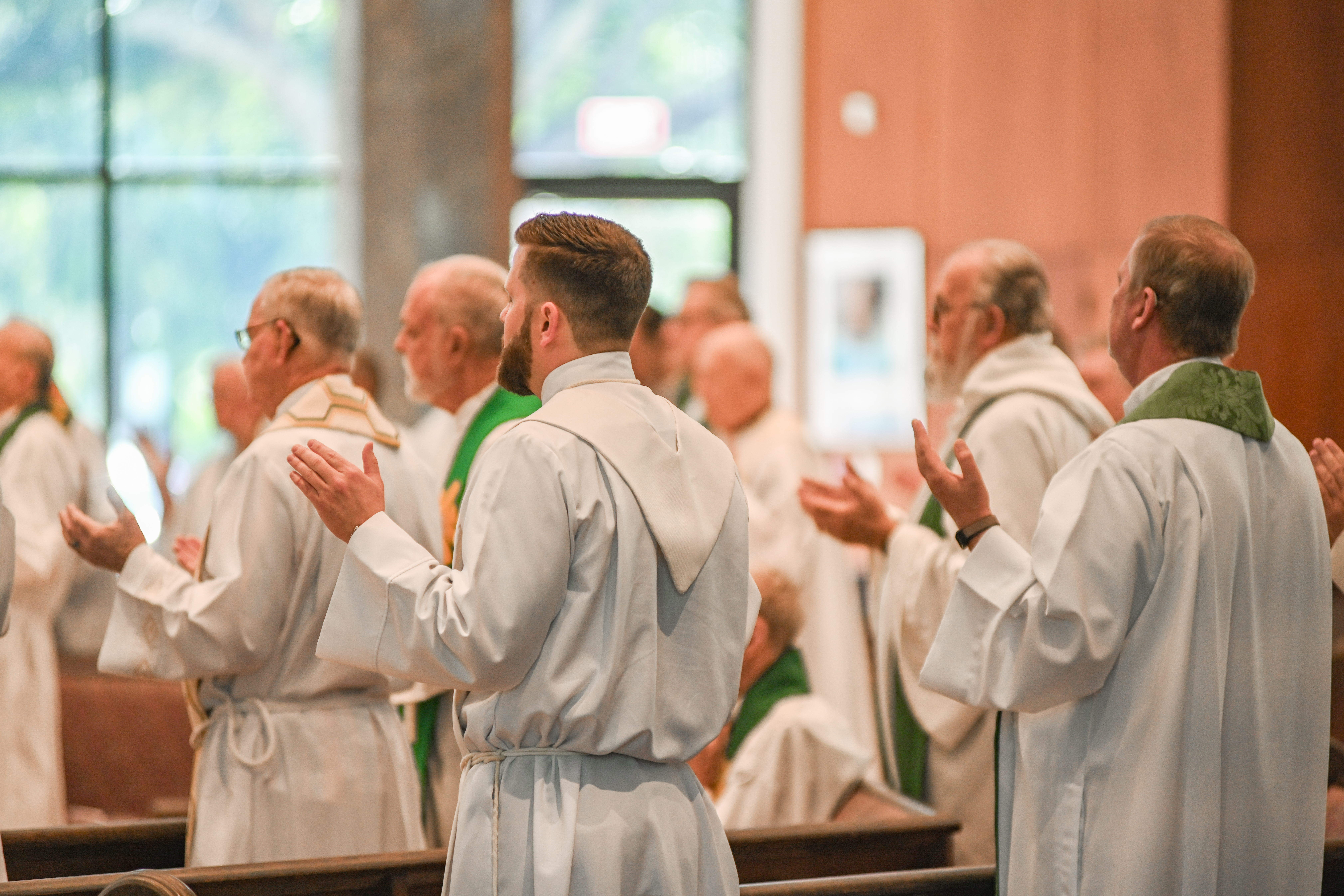 On Wednesday, November 19, 2025, a mix of active and retired priests from around the Diocese of Saint Petersburg gathered at St. Timothy Catholic Church in Lutz for an annual tradition of Mass followed by a Thanksgiving Luncheon.