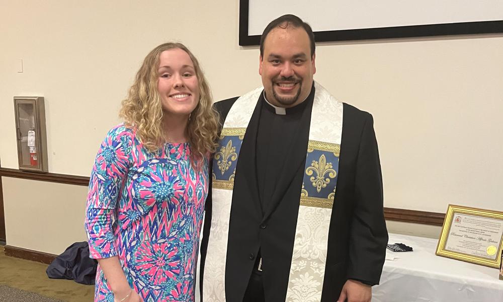 May 22, 2023 | For two years, Kaitlyn had been praying for Father Christian Galvan, even though she had never met him. It all started when a Youth Ministry leader at Espiritu Santo Parish in Safety Harbor, handed Kaitlyn a notepaper with the name Christian Galvan on it. Kaitlyn was asked to keep him in prayer because he was hoping to become a priest one day. Kaitlyn honored that request and prayed for him since that day. She was amazed to find out on Instagram that Christian would be ordained to the priesthood on Saturday, May 20th at the Cathedral of St. Jude the Apostle and she convinced her dad to take her to the ordination.